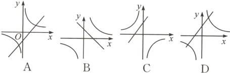 8. 函数$y = kx - k$和函数$y=\frac{k}{x}$在同一坐标系内的图象大致是( )
