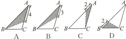 10. 在三角形纸片$ABC$中,$AB = 8$,$BC = 4$,$AC = 6$,按下列方法沿虚线剪下,能使阴影部分的三角形与$\triangle ABC$相似的是( )