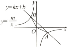 7.(2024·常州改编)如图,直线y = kx + b(k,b为常数)与双曲线$y = \frac{m}{x}$(m为常数)相交于A(2,a),B(-1,2)两点.