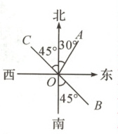 如右图所示,目标方向线OA,OB,OC的方向角分别可以表示为北偏东30°、________西45°、________45°,其中南偏东45°习惯上又叫做东南方向,北偏西45°习惯上又叫做西北方向.