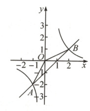 2.(2024·常州)如图,平面直角坐标系中,一次函数y = kx + b的图象与反比例函数y = $\frac{m}{x}$的图象交于点A(-1,n),B(2,1),连接AO,BO.
