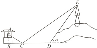 解:过点E作EF⊥CD,交CD的延长线于点F,在Rt△DFE中,∠EDF = α = 53°,