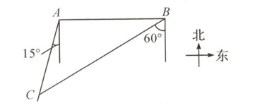 10.(2024·湖北模拟)学生甲在凉亭A处测得湖心岛C在其南偏西15°的方向上,又从A处向正东方向行驶300 m到达凉亭B处,测得湖心岛C在其南偏西60°的方向上,则凉亭B与湖心岛C之间的距离为____m.