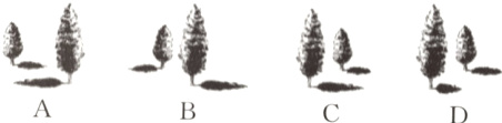 2. 下列四幅图中,能表示两棵小树在同一时刻阳光下的影子的图形是( )