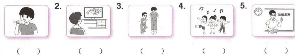 ( )3. I'm late for ________ class. (A. maths B. music C. PE)