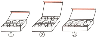 上面三个盒子,容积最大的是( ( ) ),容积最小的是( ( ) )。(填序号)