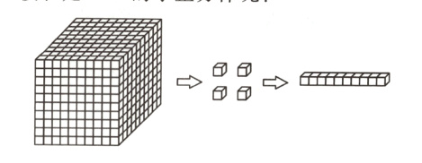 五 把棱长为1m的正方体切割成棱长是1dm的小正方体,把这些小正方体一个挨一个地连起来,可以摆多少米长?如果切割成棱长是1cm的小正方体呢?