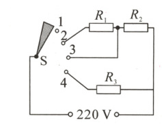 (1)2 和 3。让其和触点 1 和 2 接触时,R₁、R₂ 串联接入电路中,和 2 和 3 接触时,R₂ 接入电路中,与 3 和 4 接触时,R₂、R₃ 并联,由并联电阻小于其中任一电阻,串联电阻大于其中任一电阻,可知和 2 和 3 接触时电阻较小,根据 P = $\frac{U^{2}}{R}$可知,此时电路的功率较大,为中温挡;