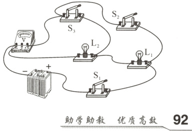 16.(2023·福建)如图所示,电源电压不变,灯L₁、L₂完全相同。闭合S₁,断开S₂、S₃,灯L₁、L₂是________联的。闭合S₁、S₂,断开S₃,电压表示数为U₁;闭合S₁、S₃,断开S₂,电压表示数为U₂,则U₁∶U₂ = ________。