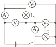 9.(2023·怀化)在如图所示电路中,闭合开关后电压表V₁的示数为2.5 V,V的示数为4.5 V,则电路的电源电压为______V,灯L₂两端电压为______V。