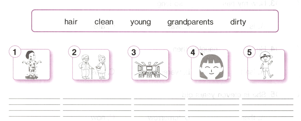 1. dirty 2. grandparents 3. clean 4. hair 5. young