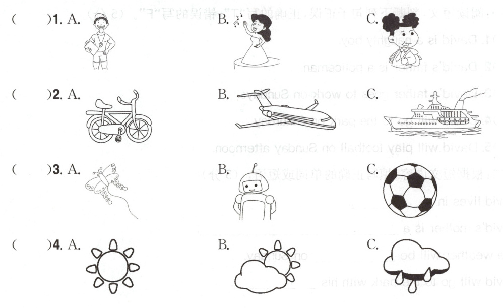 ### 二、听录音,选择与你所听到的内容相符的图片,将其序号填入题前括号里。(10分)