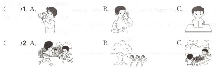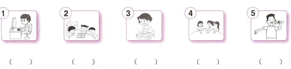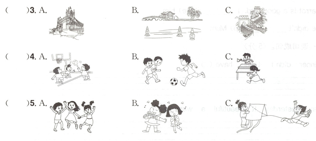 三、听录音,选择与你所听到的内容相符的图片,将其序号填入题前括号里。(10分)