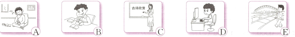 四、听录音,选择相应的图片,将其序号填入题前括号里。(10分)