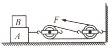 9.(多选)(2024·达州改编)如图所示,A、B两物体叠放在水平桌面上,$G_{A}=80$N,$G_{B}=20$N,A、B均为正方体,边长分别为20 cm、10 cm。在拉力F = 30 N的作用下,5 s内,物体A、B一起向右匀速直线移动了3 m。若不计滑轮和绳自重及绳与滑轮间的摩擦,下列说法正确的是( )