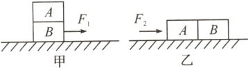 10.(变式2)如图甲所示,完全相同的木块A和B叠放在水平桌面上,在10N的水平拉力F1作用下,A、B一起以2m/s的速度做匀速直线运动,此时木块B受木块A的摩擦力大小为______N,木块B受地面的摩擦力为______N,若将A、B紧靠着放在水平桌面上,用水平力F2推动它们一起以1m/s的速度做匀速直线运动,如图乙,则推力F2 = ______N。
