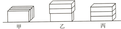 9. 如图所示,每块砖的质量相等,长、宽、高分别是40 cm、20 cm、10 cm,以三种方式摆放在水平地面上。比较地面受到压强p甲、p乙、p丙的大小,正确的是 ( )
