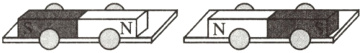 10.(教材改编题)如图所示,两个靠得较近的小车上分别固定一块磁体,松手后,两小车分别朝两边运动。这个现象不能说明 ( )
