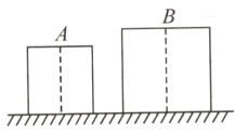 4. 如图,质量相等的实心均匀正方体A和B平放在水平地面上(ρA>ρB),它们对地面的压强分别为pA和pB,则pA______pB。现竖直切去左半部分(如图中虚线所示),剩余部分对地面的压强分别为pA'和pB',则pA'______pB',pA'______pA。(均选填">""<"或"=")