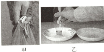 [应用示例1]物理小妙招,生活更精彩。图甲中,用圆纸筒穿过购物袋的提手提重物就不勒手,这是通过增大______来减小压强;图乙是自制简易蛋黄分离器,挤压矿泉水瓶,让瓶口贴近蛋黄,松开手蛋黄被吸进瓶子里,这是利用______的作用。