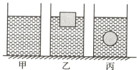 10.如图所示,三个相同的容器内水面高度相同,甲容器内只有水,乙容器内有木块漂浮在水面上,丙容器中悬浮着一个小球,则下列四种说法正确的是 ( )