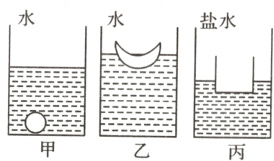 D.乙容器中橡皮泥排开水的体积大于丙容器中橡皮泥排开盐水的体积
