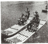 2.(真实情境)竹筏漂流是许多景区的旅游项目之一,现有一竹筏,质量为64 kg,体积为0.8 m³,($g = 10\text{ N/kg}$,水的密度$\rho = 1.0\times10^{3}\text{ kg/m}^{3}$)求: