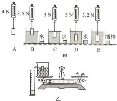 (3)由图甲中A、D、E可知,浮力与液体的密度____(选填“有关”或“无关”)。
