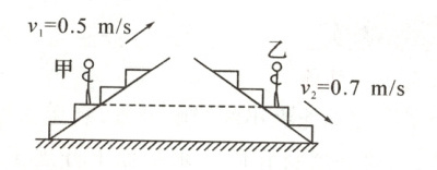 12.(科学思维)甲站在0.5 m/s匀速上行的自动扶梯上,乙站在0.7 m/s匀速下行的自动扶梯上。甲的质量小于乙的质量,某时刻他们的位置如图所示,该时刻甲的重力势能______乙的重力势能,甲的动能______乙的动能(均选填“大于”“等于”或“小于”)。