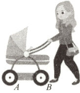 2. 如图,一位母亲推着婴儿车行走,当前轮遇到障碍物时,母亲向下按扶把,若