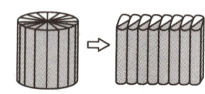 六、如图,把圆柱切开后拼成一个近似的长方体,它的表面积比原来圆柱多40cm²。圆柱的高是5cm,体积是多少立方厘米?