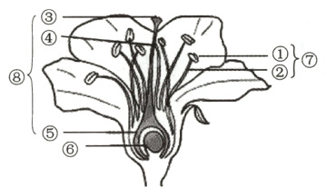 (2)图中数字______和______所示结构为一朵花的主要部分。