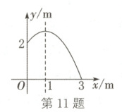 11. (16分)随着新农村的建设和旧城的改造,我们的家园越来越美丽.小明家附近广场中央新建了一个圆形喷水池,在水池中心竖直安装了一根高为2 m的喷水管,它喷出的抛物线型水柱在与水池中心的水平距离为1 m处达到最高,水柱落地处离水池中心3 m.