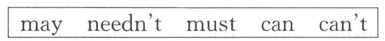 1. needn’t 2. Can 3. can’t 4. may 5. must