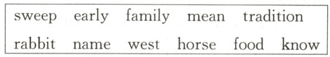 1. families 2. foods 3. Western 4. traditions 5. sweeping 6. known 7. named 8. rabbit 9. earlier 10. meaning