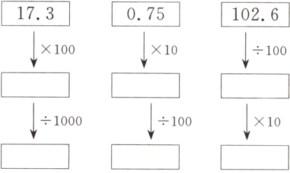 1. × 25.6×100 = 2560 2. × 71.2÷10 = 7.12 3. × 4.9÷100 = 0.049