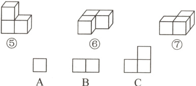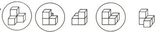 五 拿出4个小正方体搭出一个从正面看到是的立体图形,这些小正方体可以怎样拼搭?搭一搭,把搭得正确的圈出来。