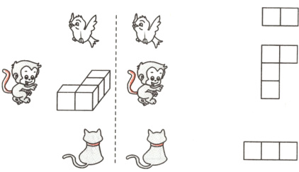 三 看一看,把你从上面、正面和左面看到的形状分别在方格纸上画出来。
