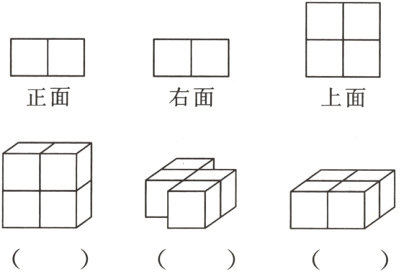 二 小米用4个小正方体搭了一个立体图形,下面的图形分别是从哪个方向看到的?(填“正面”“上面”或“右面”)