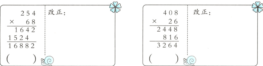 四、下面的计算对吗?对的画“√”,错的画“×”并改正。(6分)