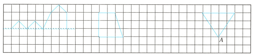 1. 根据对称轴把最左边的图形补全,使它成为一个轴对称图形。