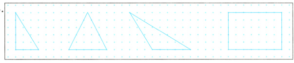 2. 在下面的点子图上分别画出一个直角三角形、一个锐角三角形、一个钝角三角形、一个长方形。(8分)