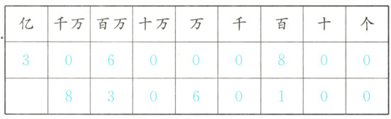 (2) 由8个千万、3个百万、6个万、1个百组成的数。