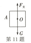 11. ★(山西中考)杂技在我国历史悠久,是力量与柔韧完美结合的传统艺术。如图甲所示为杂技演员正在表演的情景。请你在图乙中画出演员A被托举且静止时受力的示意图。