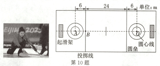 10.★★(泸州龙马潭模拟)如图所示为北京冬奥会冰壶项目,比赛所用冰壶的质量约为20kg,某次投掷时运动员用12N的水平恒力将冰壶从出发点A点推至B点后放手,放手后冰壶继续滑行至O点停止。冰壶滑行时受到的摩擦力为2N,这次投掷过程中运动员对冰壶做的功为________J,冰壶克服摩擦做功________J。(g取10N/kg)