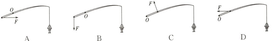 3. 钓鱼活动深受人们喜爱。下列图中你认为最合理的拉起鱼竿的方式是 ( )