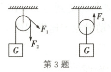 3. 如图所示,分别用力$F_{1}$、$F_{2}$、$F_{3}$匀速提起同一重物。若不计滑轮重与摩擦,则( )