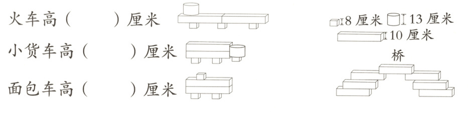5. 将下面的长度按照从短到长的顺序填入车厢。