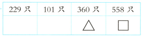 6. 长颈鹿和小兔子各有多少只?在长颈鹿的数量下画“△”,在小兔子的数量下画“□”。