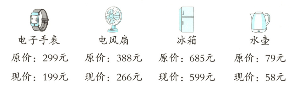 (2) 李嘉想购买除冰箱以外的其他三样电器,至少需要带( )元。